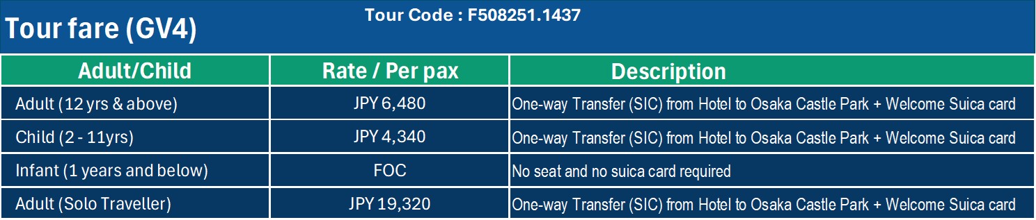 - One way door to door Cherry Tomato Shared Shuttle Transfer to Osaka Castle Park